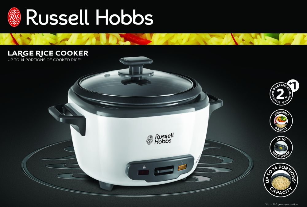 Potřebujete uvařit velké množství rýže pro celou rodinu? Máme pro Vás velký rýžovar Russell Hobbs 27040-56, který zvládne uvařit až 14 porcí rýže (přibližně 200 g vařené rýže na porci). Ideální pro velké domácnosti. Stylový bílý design skvěle padne do každé kuchyně. Součástí rýžovaru je i parní koš, který lze využít např. na zeleninu. Jistě oceníte také automatické udržování teploty. Odnímatelná mísa s nepřilnavým povrchem i víko z temperovaného skla je možné mýt v myčce na nádobí. Ušetříte si tak čas s jejich umýváním.